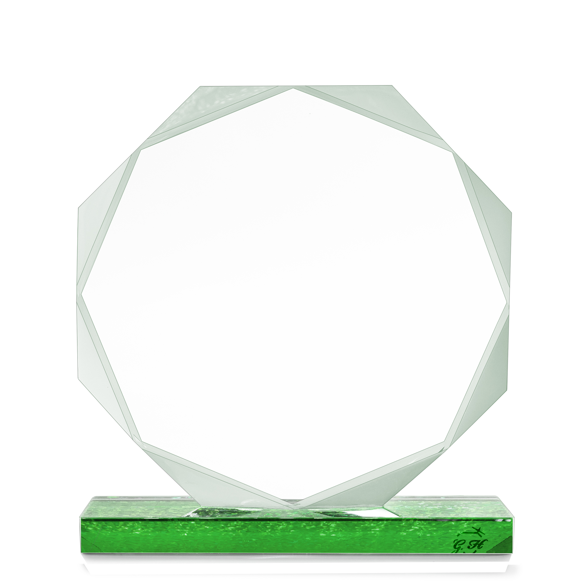 Bespoke 1 Series Premium Octa Nonagon Plaque – ย This plaque offers you the option to entirely bespoke your own plaque! Introducing our bespoke plating workmanship that is done on the crystal productโs base. It reflects the color design of the plating from beneath the Clear Crystal for a distinctive visual!ย The color glitter workmanship on the base adds a modern and eye-catching twist, making it a true standout piece that will capture attention and admiration.